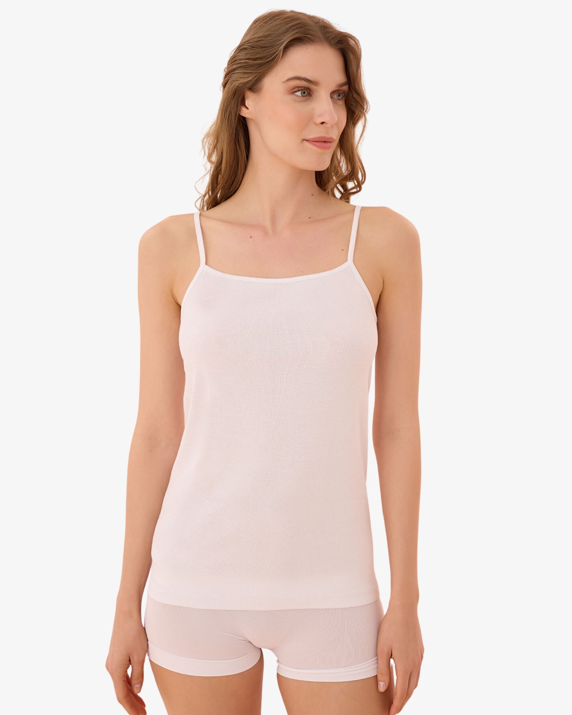 İnce askılı seamless atlet, dikişsiz yapısı sayesinde kıyafetlerin altında görünmezlik sağlar. Yumuşak, esnek ve nefes alabilen kumaşı ile gün boyu rahat bir kullanım sunar. Vücuda tam oturur, hareket özgürlüğü verir ve cilde dost bir his bırakır.